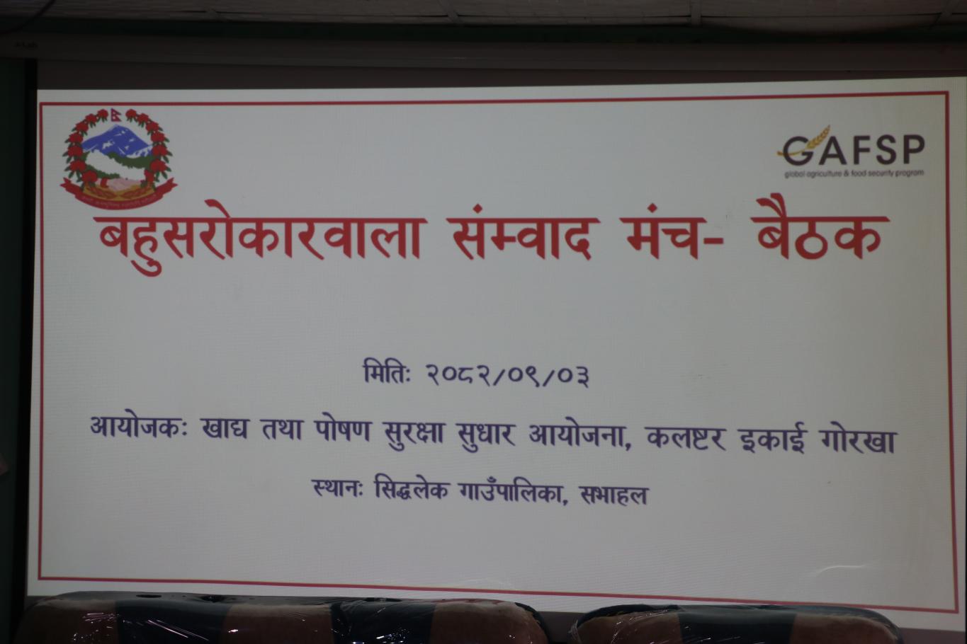 खाद्य तथा पोषण सुरक्षा प्रवर्द्धनका लागि सरोकारवालाहरू बीच आपसी समन्वय र सहकार्य सुदृढ गर्ने उद्देश्यले FANSEP अन्तर्गत बहुसरोकारवाला संवाद मञ्च–बैठक सम्पन्न।